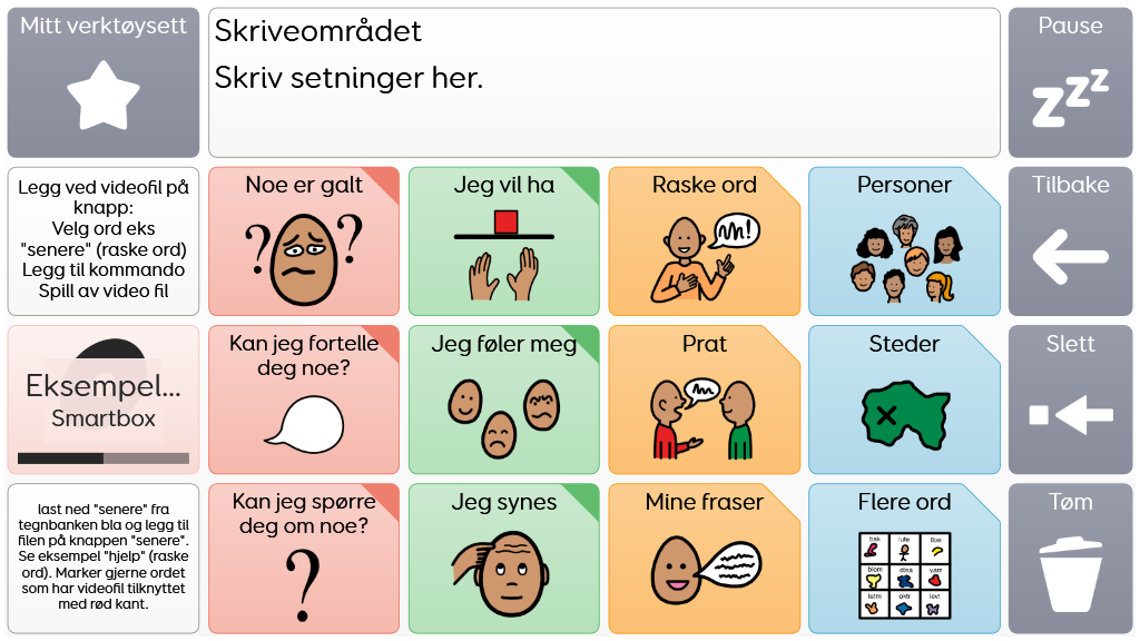 Bilder av tegn er hentet fra Tegnbanken og gjengitt med tillatelse fra Statped. Statped har ikke ansvar for det faglige innholdet i dette produktet.
