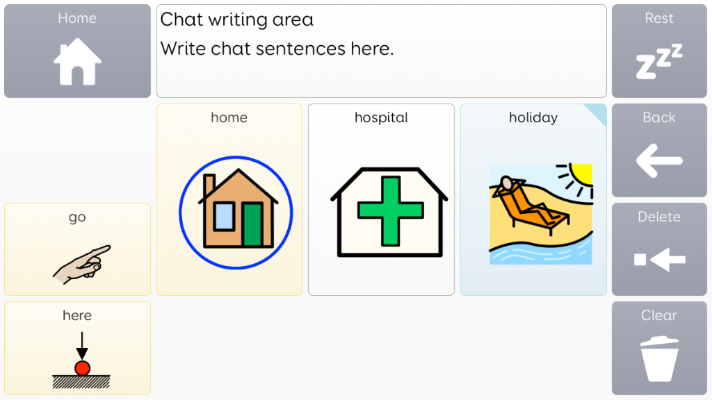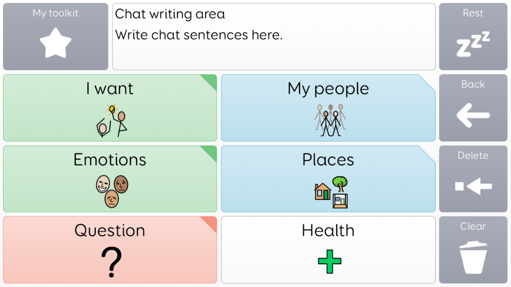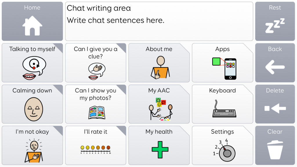 Voco Chat is a low-cell count symbol vocabulary, designed to enable users to communicate for a wide range of reasons. Message pathways, with built-in jumps and carefully selected vocabulary, provide a supported approach to language. The grid set includes resources for supporting communication and emotional wellbeing, with apps such as Symoji and Camera to support interaction and engagement. Voco Chat is suitable for anyone who needs larger cells, and can be used with touch, eye gaze, pointer and switches. Auditory prompts are included for both columns and individual cells. When you add Voco Chat for the first time, you can select either ‘Child’ or ‘Teen and Adult’ in order to choose the most appropriate vocabulary for the user. v1.05