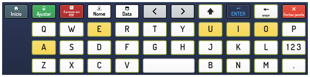 Escrever em PDF, com um teclado de comunicação básica para sala de aula.