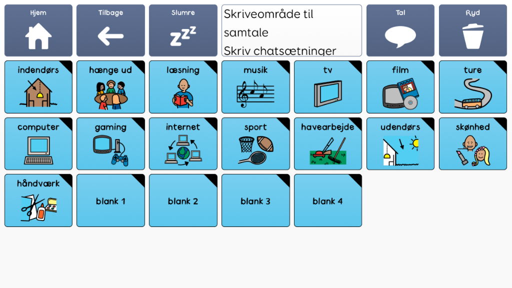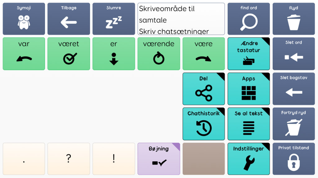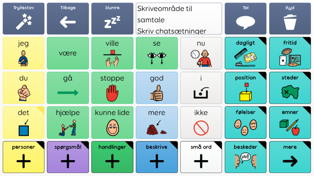 SUPER CORE 30 Super Core er en let måde at bruge kerneordforråd, designet til at hjælpe nye ASK brugere med at få en succes med deres symbol kommunikation. Det kombinerer et konsekvent kerneordforråd med kontekstspecifikt sprog, med fokus på daglige rutiner og legeaktiviteter for at holde kommunikationen meningsfuld og motiverende! Super Core er designet til at give et funktionelt, men simpelt ordforråd, der understøtter sprog-, lærings- og læseudvikling. Den er udviklet baseret på forskning og er udviklet af audiologopæd Daisy Clay fra Smartbox. Super Core er tilgængelig i PCS symboler og er også tilgængelig med flere celler pr. side (Super Core 50). v2.07