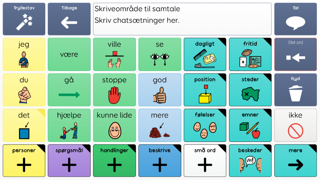 SUPER CORE 30 Super Core er en let måde at bruge kerneordforråd, designet til at hjælpe nye ASK brugere med at få en succes med deres symbol kommunikation. Det kombinerer et konsekvent kerneordforråd med kontekstspecifikt sprog, med fokus på daglige rutiner og legeaktiviteter for at holde kommunikationen meningsfuld og motiverende! Super Core er designet til at give et funktionelt, men simpelt ordforråd, der understøtter sprog-, lærings- og læseudvikling. Den er udviklet baseret på forskning og er udviklet af audiologopæd Daisy Clay fra Smartbox. Super Core er tilgængelig i PCS symboler og er også tilgængelig med flere celler pr. side (Super Core 50). v2.07
