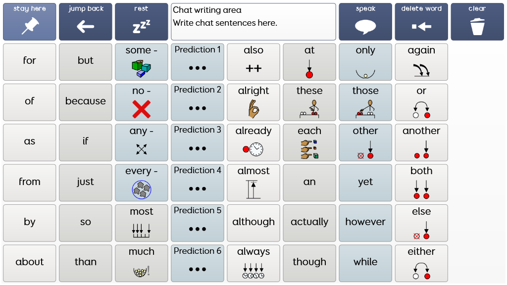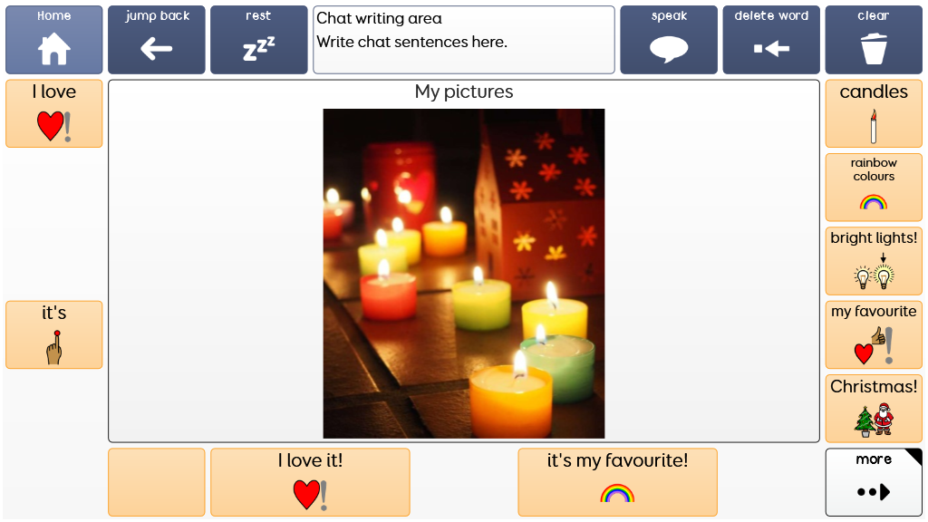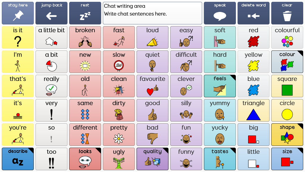 This version of Supercore has been edited so that there is a visual scene display section, called 'my photos' from the home page. The visual scenes allow us to programme stage 1 phrases and possible stage 2 mitigations onto the same page. Please see ali_battye_speech on instagram for more info about how to use this: content is coming soon! Ali will also be speaking about this at the 2024 GLP conference which can be searched online. Super Core is an easy-to-use core vocabulary designed to help early AAC users experience success with symbol communication. It combines a consistent core vocabulary with context specific language, focusing on daily routines and play activities to keep communication meaningful and motivating! Super Core is designed to provide functional yet simple vocabulary, that supports language, learning and literacy development. It is grounded in research, and was developed by Smartbox Speech and Language Therapist Daisy Clay. Super Core is available in Widgit symbols or PCS, and is also available with larger cells (Super Core 30). v2.08