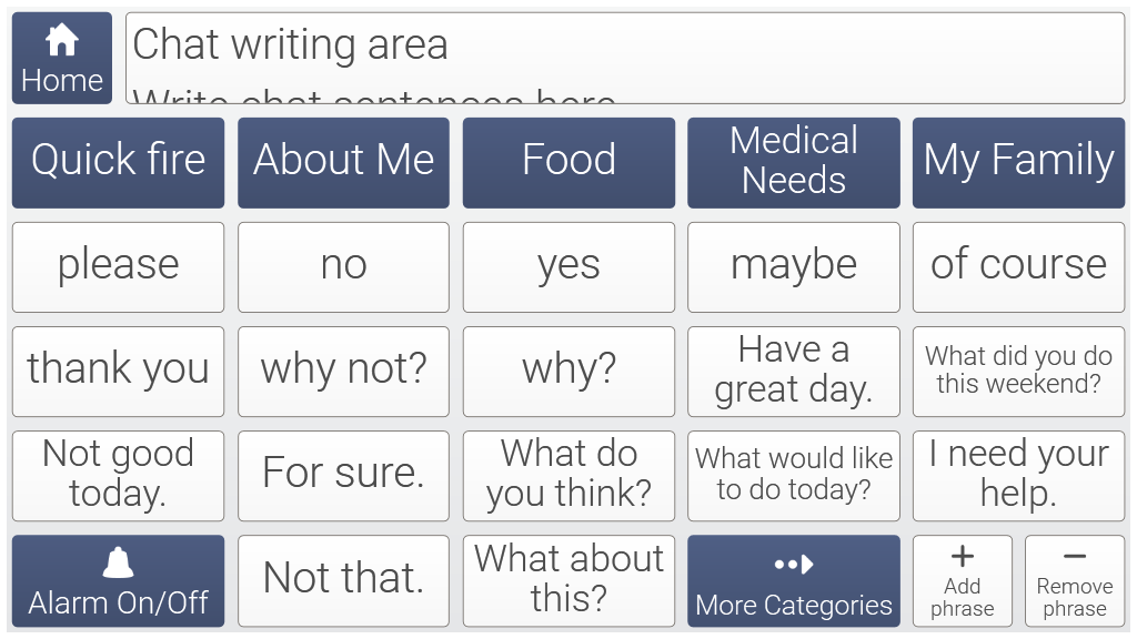 A complete solution for literate users. Fast Talker 3 includes apps for fast text communication, instant messages, SMS, e-mail, Facebook, Twitter, and much more. It also provides resources for Servus Environment Control and full access to windows using our computer control features.