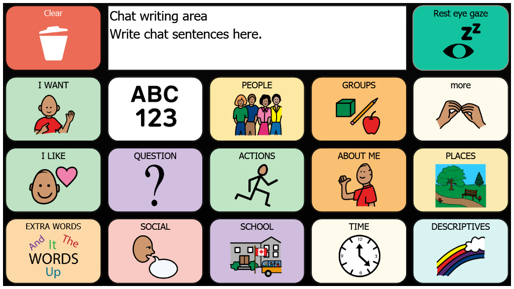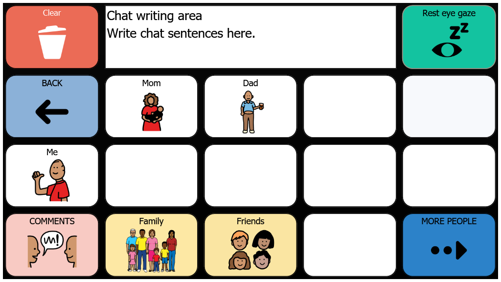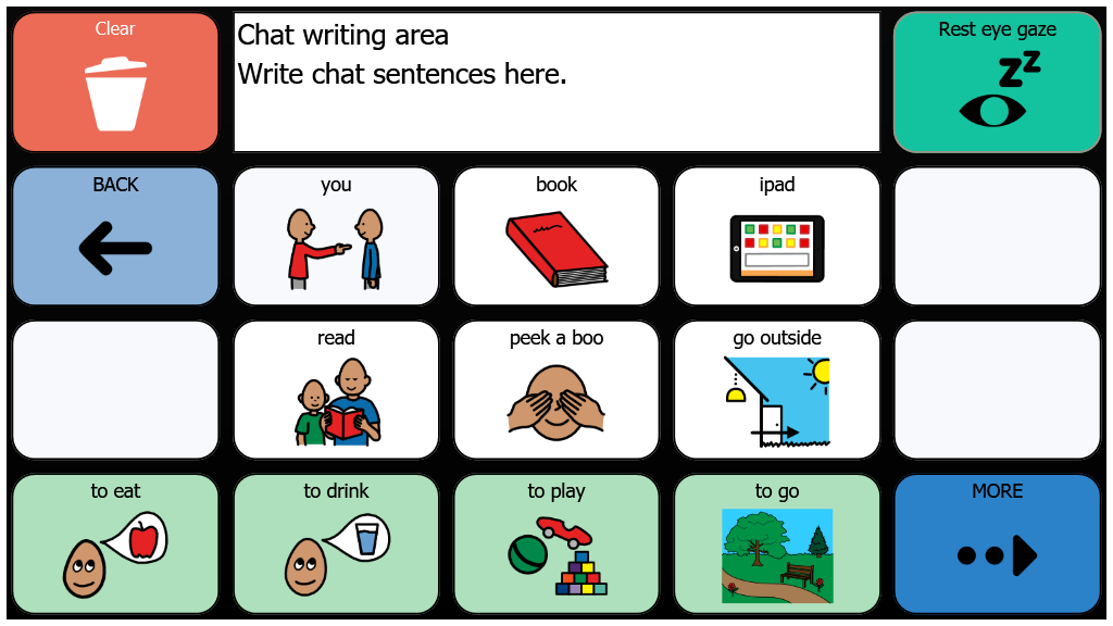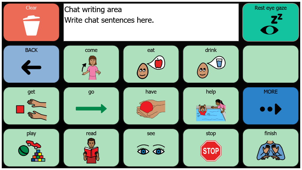 Early Core 15-cells with Eyegaze Auto Rest cell - 3Rx5C and 9 & 12 buttons games