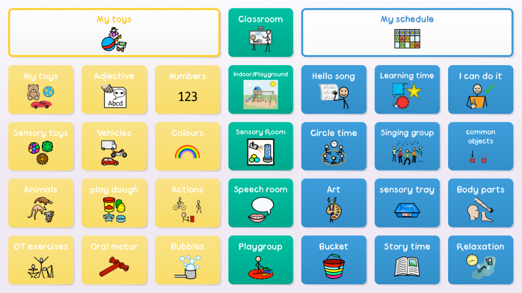 The Super Core Learning grids offer a gentle progression to the full Super Core symbol vocabulary, and an opportunity to build confidence with symbol AAC. They include all of the daily and play activity vocabulary from Super Core, alongside a simplified core vocabulary with a lower cell count of 12 and 20 cells. This version contains Widgit Symbols. Versions are also available in Picture Communication Symbols (PCS) Classic and high contrast symbols. v2.03