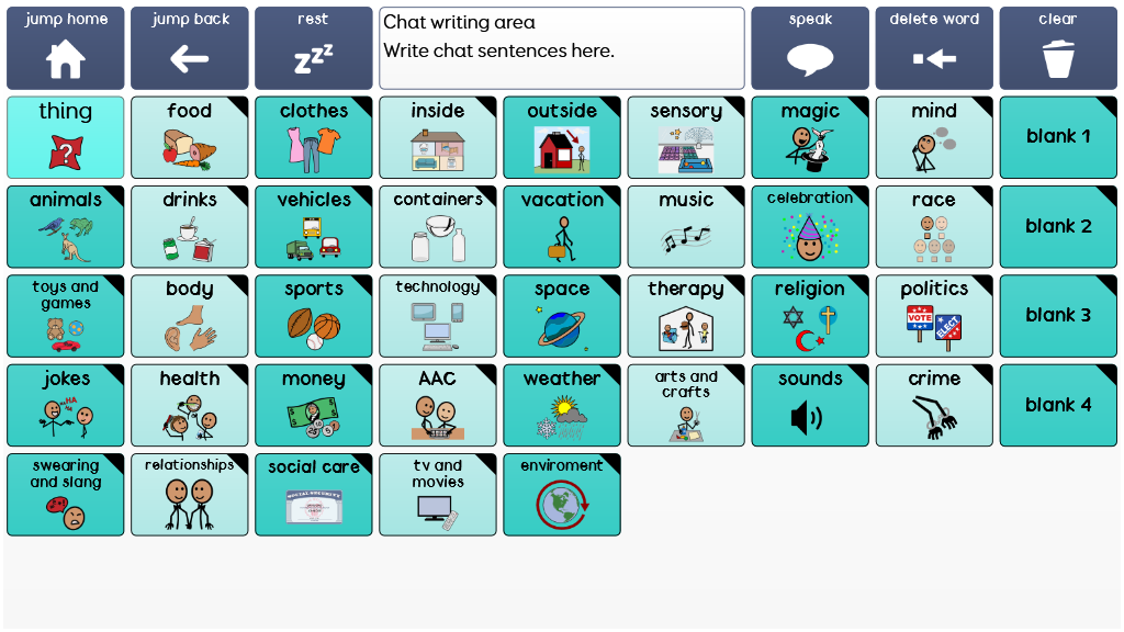 Super Core is an easy-to-use core vocabulary designed to help early AAC users experience success with symbol communication. It combines a consistent core vocabulary with context specific language, focusing on daily routines and play activities to keep communication meaningful and motivating! Super Core is designed to provide functional yet simple vocabulary, that supports language, learning and literacy development. It is grounded in research, and was developed by Smartbox Speech and Language Therapist Daisy Clay. Super Core is available in PCS or Symbol Stix, and is also available with larger cells (Super Core 30). Version 2.09