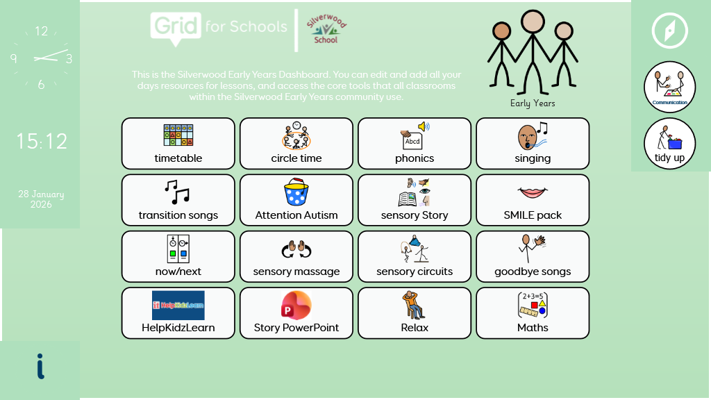 Organize your school day with a central hub for sessions, activities, and essential resources, all linked for easy access and a smooth learning experience. Created for Silverwood School Early Years. v1.1