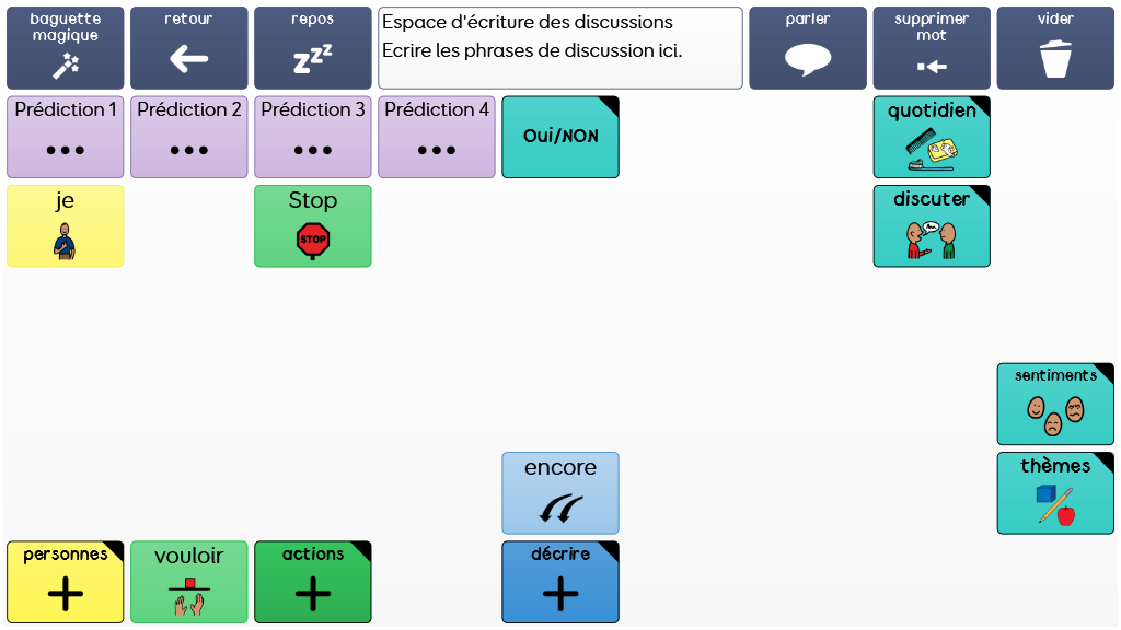 Super Core est un vocabulaire de base facile à utiliser, créé pour la réussite des utilisateurs débutants en CAA symbolique. Il combine un vocabulaire de base cohérent avec un vocabulaire spécifique contextuel, en se focalisant sur les routines quotidiennes et les activités ludiques pour garder la communication pleine de sens et motivante! v.2.04
