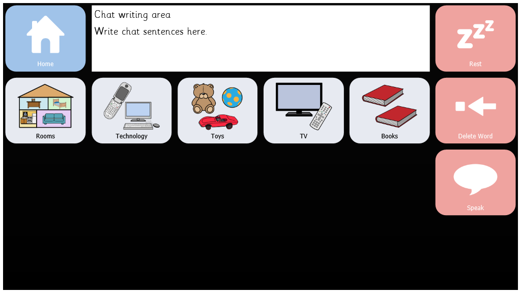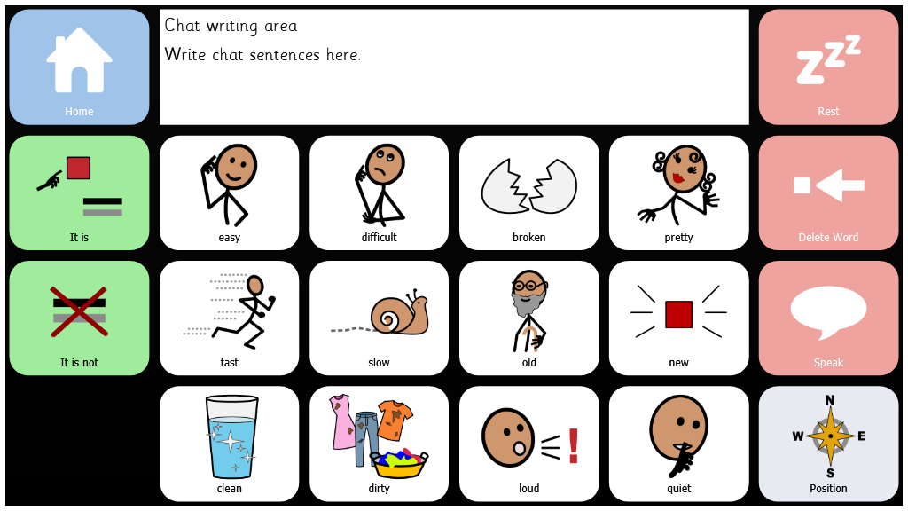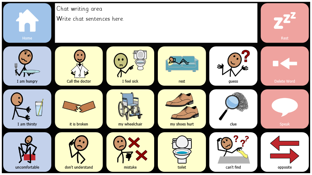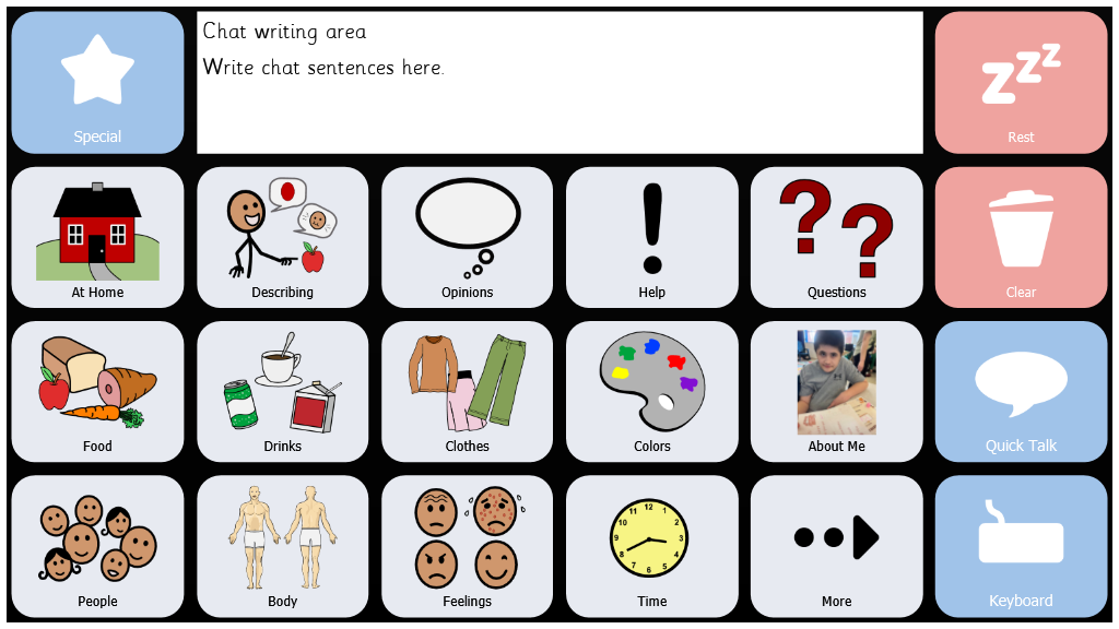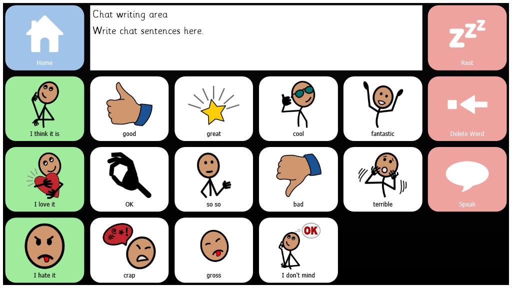 Symbol Talker is a complete vocabulary package for someone who wishes to use symbols to talk. It has pages to prompt opinions, as well as pages for School, Home, and Therapy use.