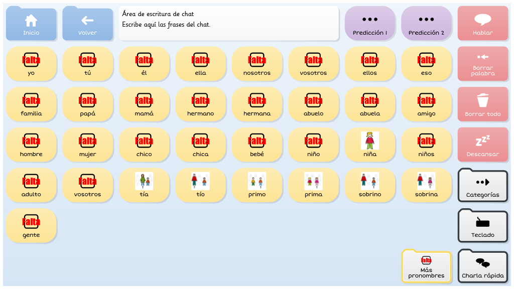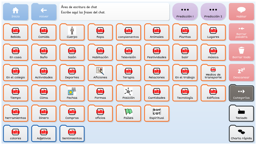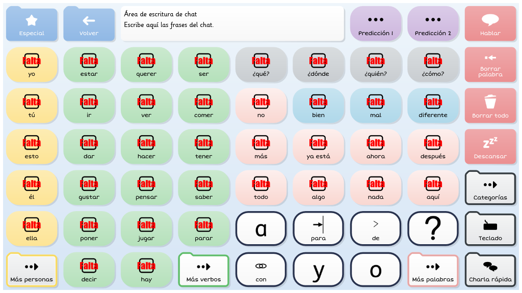 Symbol Talker Núcleo Arasaac, contiene el vocabulario núcleo en la página de inicio. Esto significa que puedes generar frases nuevas de manera rápida y acceder a las cuadrículas temáticas solo para encontrar palabras menos comunes. Los símbolos pictográficos utilizados son propiedad del Gobierno de Aragón y han sido creados por Sergio Palao para ARASAAC (http://arasaac.org) que los distribuye bajo licencia Creative Commons (BY-NC-SA).