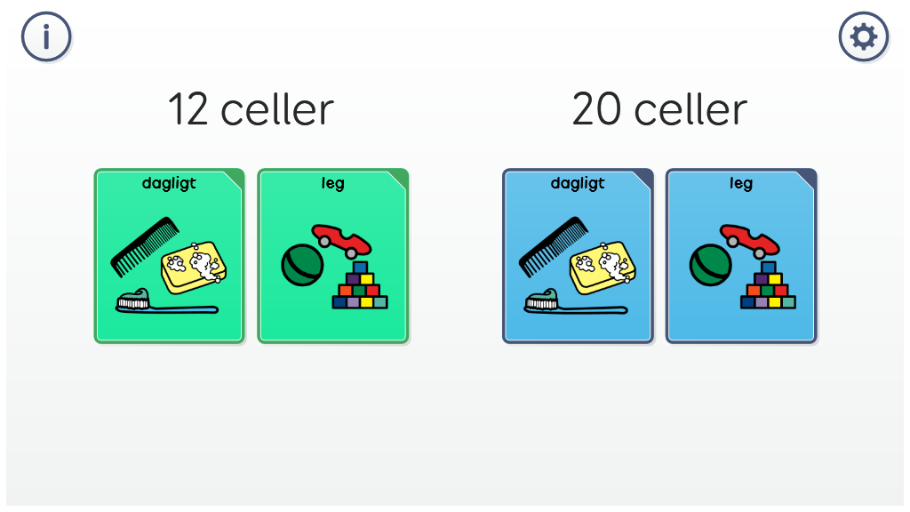 Super Core Learning-grid layoutet giver en blid overgang til det fulde Super Core-symbol ordforråd og en mulighed for at opbygge selvtillid med symbol ASK. De inkluderer alle de daglige ordforråd og legeaktiviteter fra Super Core sammen med et forenklet kerneordforråd med et lavere celletal på 12 og 20 celler.