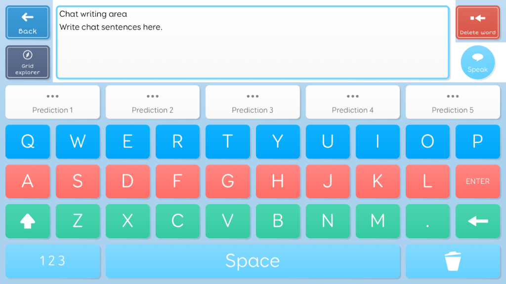 A simple keyboard with colourful keys and symbolised prediction cells.