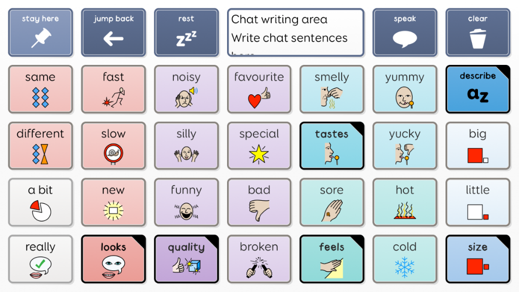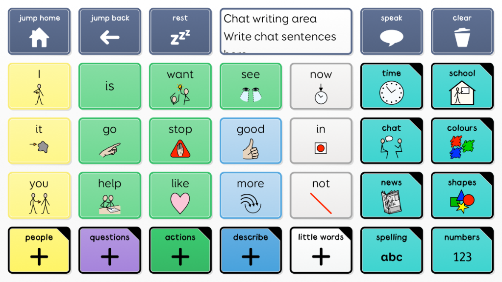 Super Core 30 has the exact same vocabulary as Super Core 50, and is available for users who need fewer and larger cells on each grid. Words may take more selections to get to, but they will be easier for some users to select. This easy-to-use core vocabulary is designed to help early AAC users experience success with symbol communication. It combines a consistent core vocabulary with context specific language, focusing on daily routines and play activities to keep communication meaningful and motivating! Super Core is designed to provide functional yet simple vocabulary, that supports language, learning and literacy development. It is grounded in research, and was developed by Smartbox Speech and Language Therapist Daisy Clay. v2.09