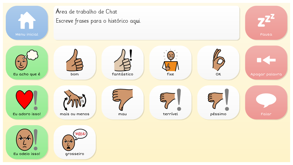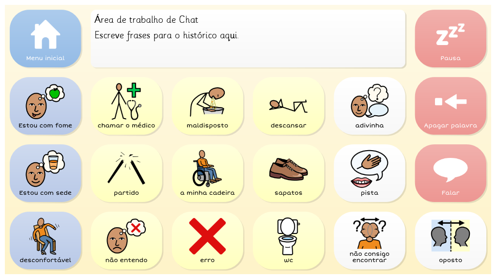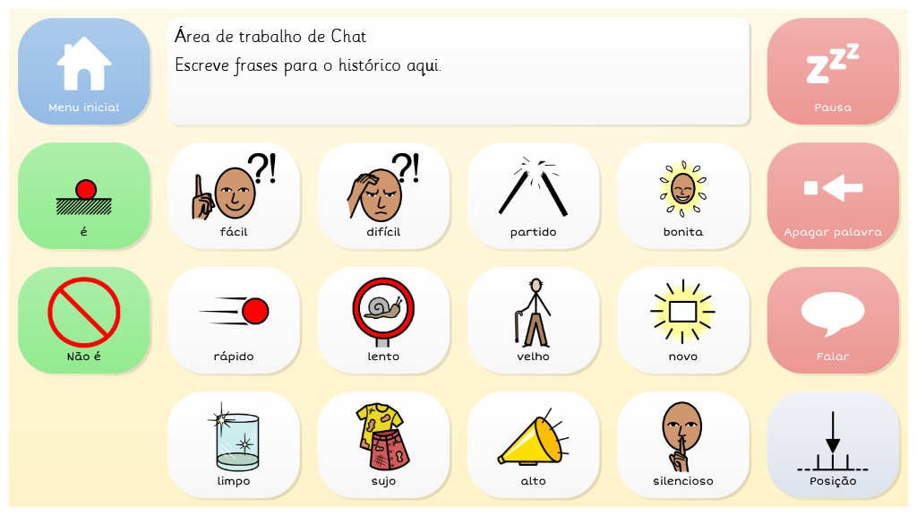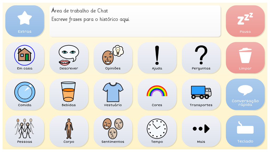 Os teclados Comunicação com Símbolos A são um pacote completo com vocabulário para quem quer comunicar através de símbolos. Estes teclados estão preparados para serem utilizados em vários contextos (ex: escola, terapia, casa, etc).