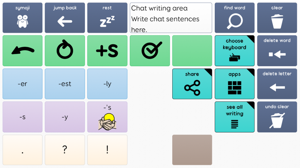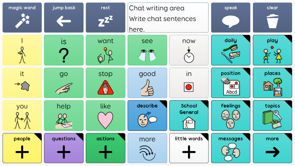 Super Core 30 has the exact same vocabulary as Super Core 50, and is available for users who need fewer and larger cells on each grid. Words may take more selections to get to, but they will be easier for some users to select. This easy-to-use core vocabulary is designed to help early AAC users experience success with symbol communication. It combines a consistent core vocabulary with context specific language, focusing on daily routines and play activities to keep communication meaningful and motivating! Super Core is designed to provide functional yet simple vocabulary, that supports language, learning and literacy development. It is grounded in research, and was developed by Smartbox Speech and Language Therapist Daisy Clay. v2.09