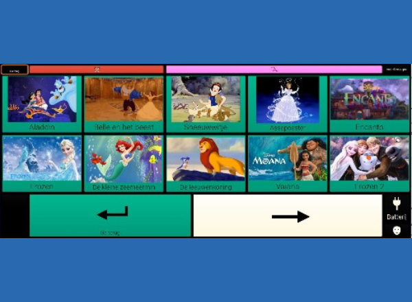 Filmpjes van Disney liedjes op youtube, dus films uit 22 bekende disney films. Gegroepeerd per film. Zo geautomatiseerd dat je vanzelf terugkomt in het menu als het gekozen filmpje klaar is. Je kind kan direct weer een ander filmpje kiezen....