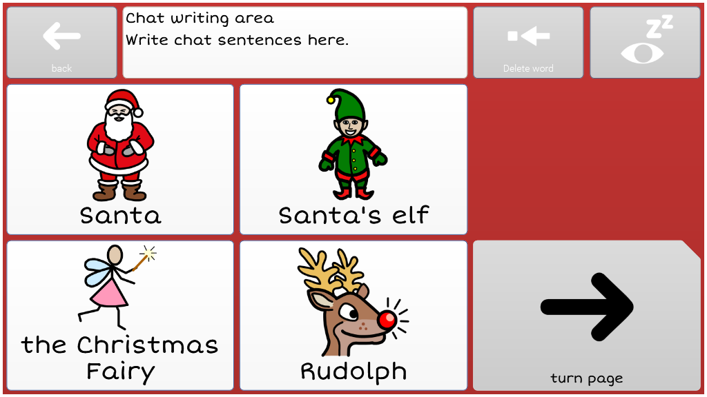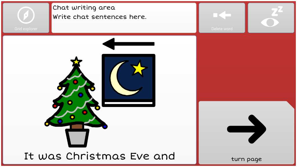 This grid set allows symbol users to write their own Christmas Eve story At the end of the story you can choose to write more, print your story, read yourstory back, or start again.