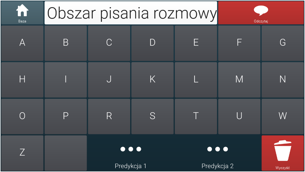Zestaw różnych klawiatur - obsługiwanych przy pomocy przycisków, gałek ocznych, myszy, itp. Dostosowane do potrzeb i możliwości różnych uczestników AAC.
