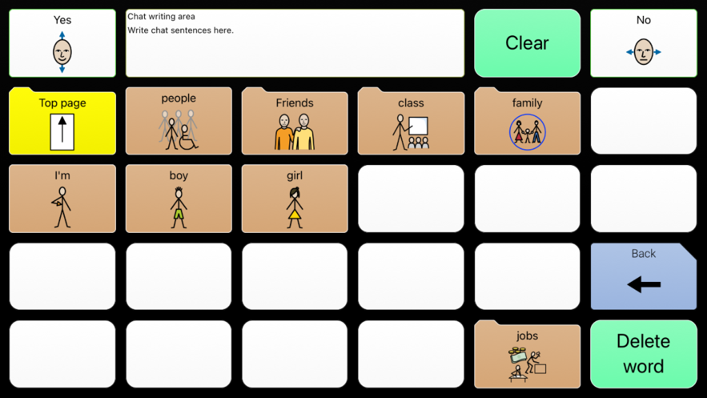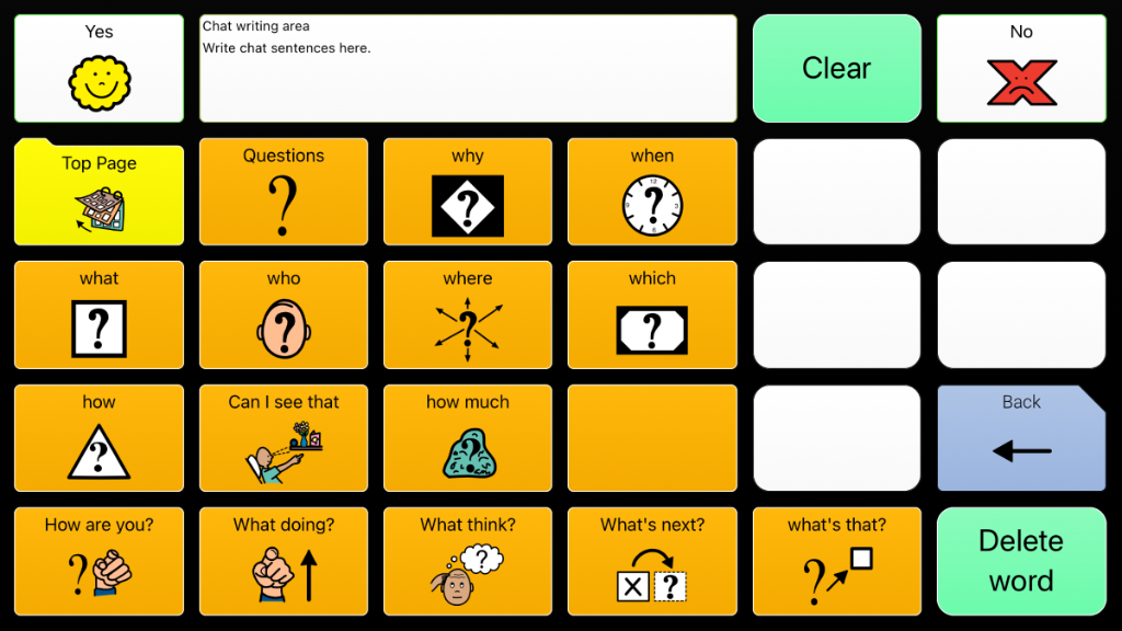CommuniKate 20 is a socially focused 20 location, page set designed exclusively for people who use AAC. It was designed so that it could be easily used in conjunction with a low-tech communication book and as a progression from a book to a dynamic display device.CommuniKate 20 is designed for people who rely heavily on the environment or context in order to communicate effectively but understand concepts and language used in conversation and during everyday activities. CommuniKate 20 supports emerging literacy skills and enhances comprehension by using photographs and symbols to represent language. It has been successfully used by people, for whom access to a large number of cells is difficult, those with visual needs who require large buttons and text, and those using auditory scanning.