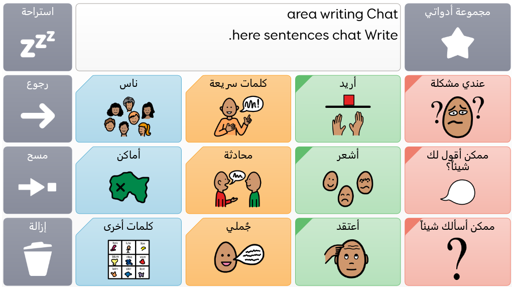 إن "فوكو تشات" جهاز يحوي مفردات رمزية ذات عدد قليل تتيح للمستخدمين فرصة التواصل لأسباب مختلفة. كما توفر مسارات الرسائل، التي تتضمن خاصية التنقل بين المواضيع بالإضافة إلى المفردات المختارة بعناية، نهجًا داعمًا للغة. تحتوي مجموعة الألواح مواردًا لدعم التواصل والصحة النفسية؛ فالتطبيقات مثل "سيموجي" والكاميرا متوفرة لتعزيز التفاعل والمشاركة. تعد "فوكو تشات" مناسبة لأي شخص يحتاج إلى خلايا أكبر، ويمكن استخدامها باللمس وحملقة العين والمؤشر والمفاتيح. وهي أيضًا مزودة بمحفزات سمعية لكل لوحة أو خلية فردية. عندما تستخدم "فوكو تشات" لأول مرة، يمكنك اختيار إما المفردات الخاصة بــ "طفل" أو "مراهق وبالغ" من أجل اختيار أنسب المفردات للمستخدم. v1.06