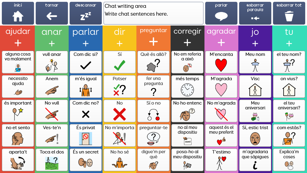 Super Core és un vocabulari nucli fàcil d'usar que ajuda a usuaris primerencs de CAA a experimentar amb èxit la comunicació amb símbols. Combina un vocabulari nucli consistent amb un llenguatge d'un context específic, centrant-te en les rutines diàries i activitats una comunicació rellevant i motivant! Pots triar entre vocabulari per a nens o vocabulari per a adolescents i adults.