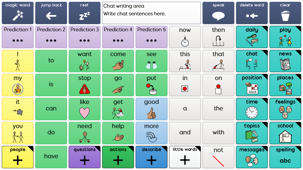 Super Core is an easy-to-use core vocabulary designed to help early AAC users experience success with symbol communication. It combines a consistent core vocabulary with context specific language, focusing on daily routines and play activities to keep communication meaningful and motivating!