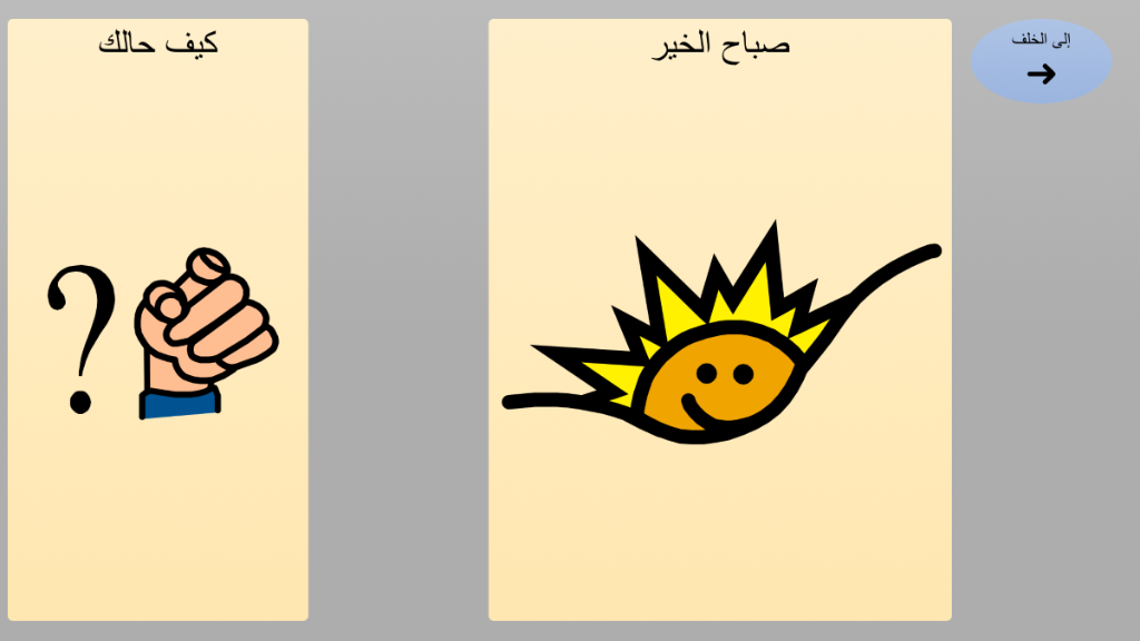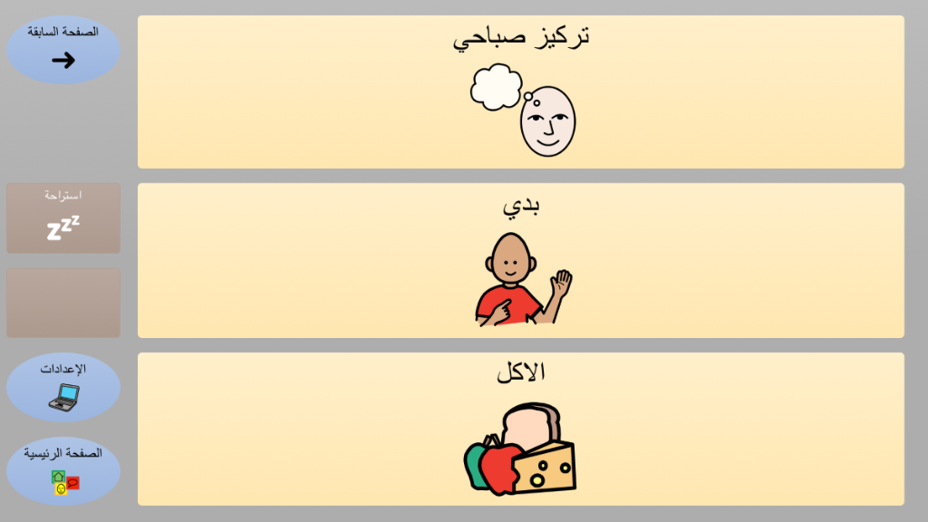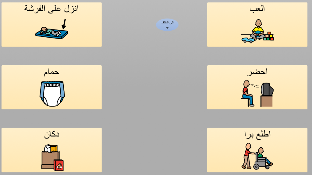 برنامج أولي وبسيط مع تسعة رموز على كل لوحة ، والتي من خلالها المُستخدم (الطفل) يتعرف على إستخدام الحاسوب لأغراض الإتصال. يحتوي البرنامج على رسائل أساسية,مُنظمة وفقاً لنوايا التواصل والعلاقات اليومية. برنامج لوحات للمذكر ، على أساس رموز PCS.