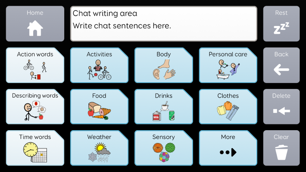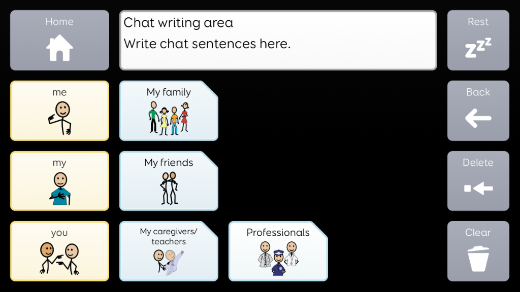 Voco Chat is a low-cell count symbol vocabulary, designed to enable users to communicate for a wide range of reasons. Message pathways, with built-in jumps and carefully selected vocabulary, provide a supported approach to language. The grid set includes resources for supporting communication and emotional wellbeing, with apps such as Symoji and Camera to support interaction and engagement. Voco Chat is suitable for anyone who needs larger cells, and can be used with touch, eye gaze, pointer and switches. Auditory prompts are included for both columns and individual cells. When you add Voco Chat for the first time, you can select either ‘Child’ or ‘Teen and Adult’ in order to choose the most appropriate vocabulary for the user. v1.05