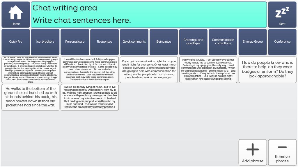 Fast Talker is a complete solution for literate users, with apps for fast text communication, message banking, SMS, email, browsing the web and much more. You can also use the Servus Environment Control resources, and get full access to Windows with our Computer Control features. v3.5.0