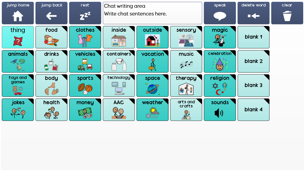 Super Core is an easy-to-use core vocabulary designed to help early AAC users experience success with symbol communication. It combines a consistent core vocabulary with context specific language, focusing on daily routines and play activities to keep communication meaningful and motivating! Super Core is designed to provide functional yet simple vocabulary, that supports language, learning and literacy development. It is grounded in research, and was developed by Smartbox Speech and Language Therapist Daisy Clay. Super Core is available in PCS or Symbol Stix, and is also available with larger cells (Super Core 30). Version 2.09