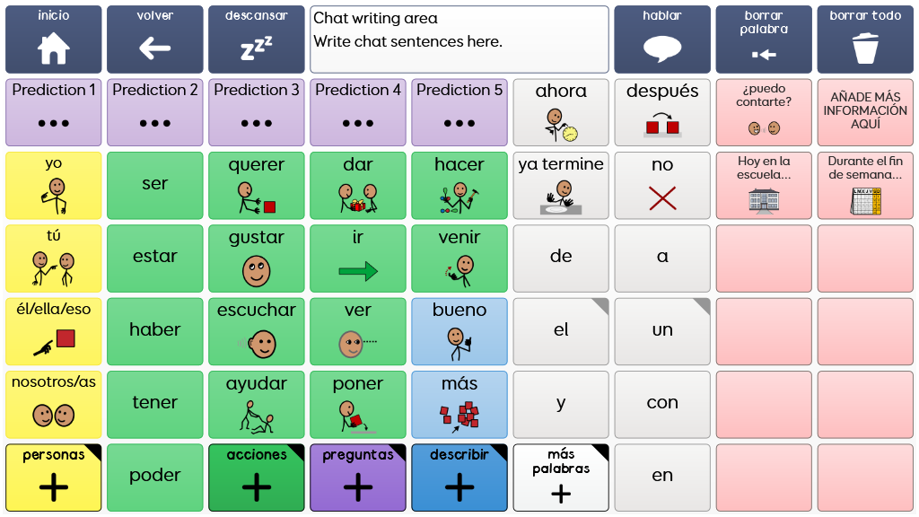 Super Core es un vocabulario núcleo fácil de usar que ayuda a usuarios primerizos de CAA a experimentar con éxito la comunicación con símbolos. ¡Combina un vocabulario núcleo consistente con un lenguaje de un contexto específico, centrándote en las rutinas diarias y actividades para hacer la comunicación relevante y motivante! Puedes elegir entre vocabulario para niños/as o vocabulario para adolescentes y adultos. Super Core está diseñado para proporcionar vocabulario simple pero funcional que ayude al desarrollo del lenguaje, del aprendizaje y de la lectoescritura. Está basado en investigaciones y ha sido desarrollado por Daisy Clay, logopeda de Smartbox. v2.04