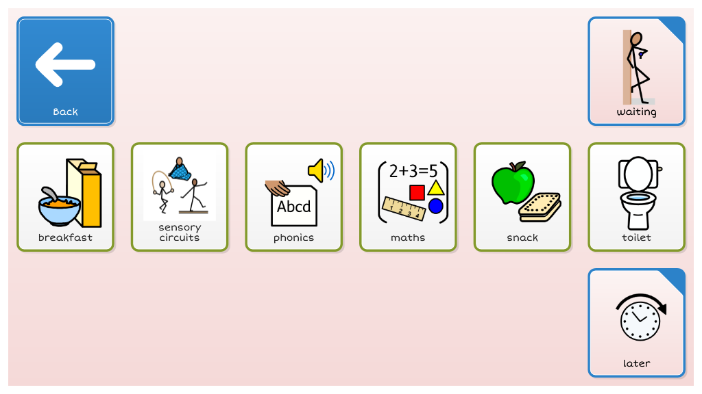Visual timetable for pupils in Blackbird class at Silverwood school. Term 2