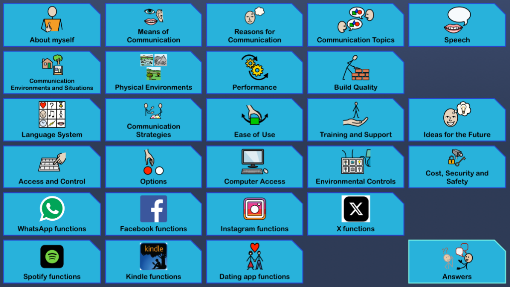 Modified set of topics and answers to help evaluate AAC