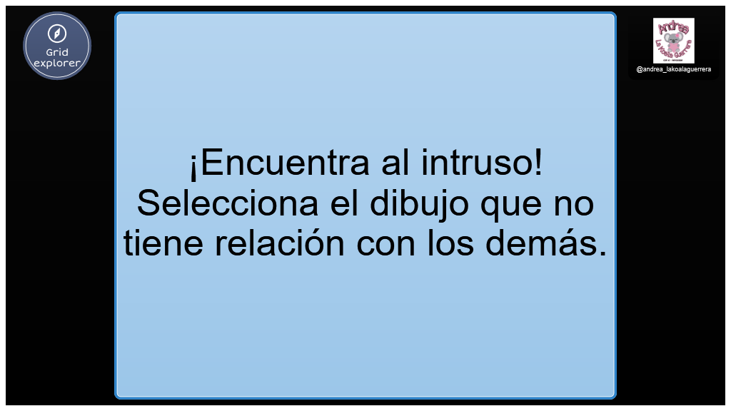 ¡Encuentra al intruso! Selecciona el dibujo que no tiene relación con los demás. Creado por @andrea_lakoalaguerrera