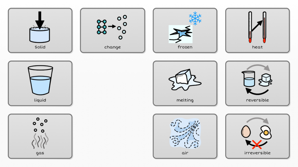 Strawberry science term 4 Language: States of matter: solid, liquid, gas Reversible and irreversible