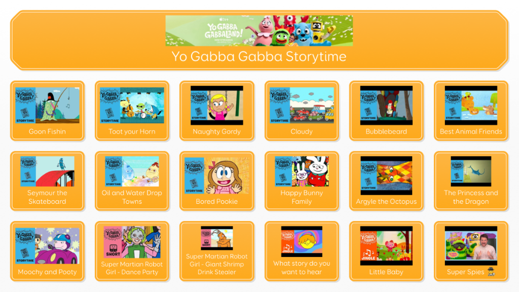 Yo Gabba Gabba storytime and super Martian robot girl videos