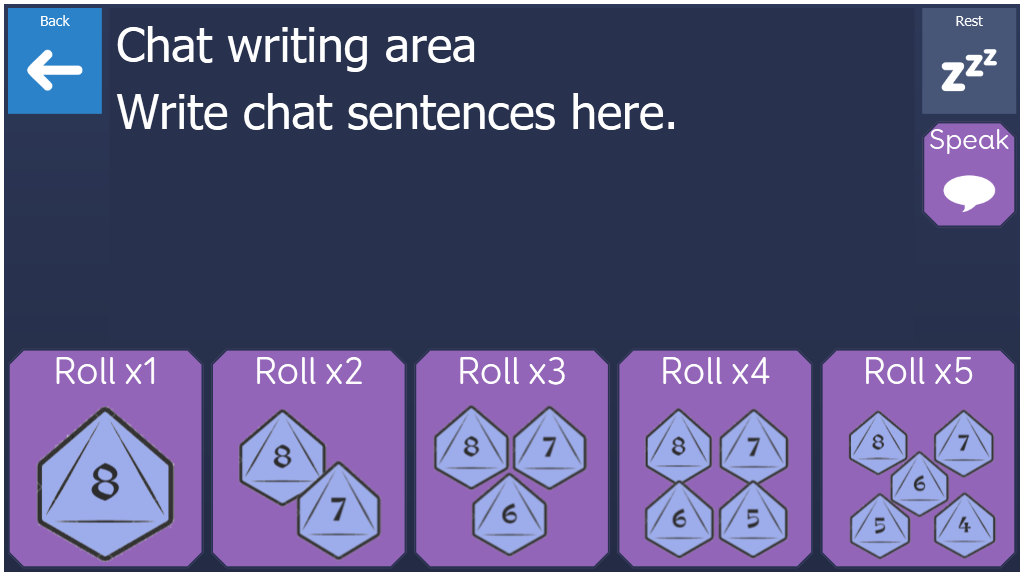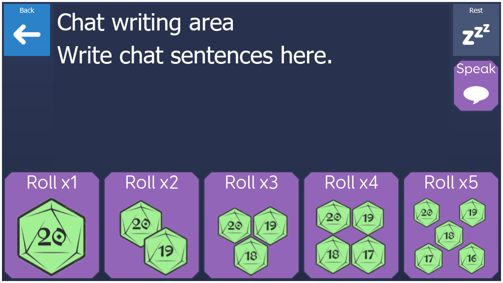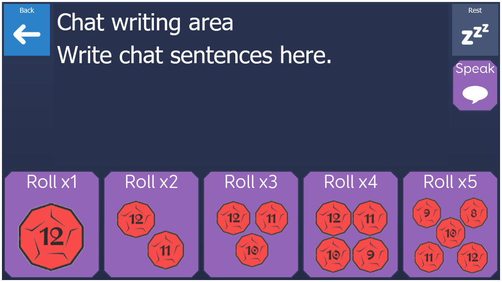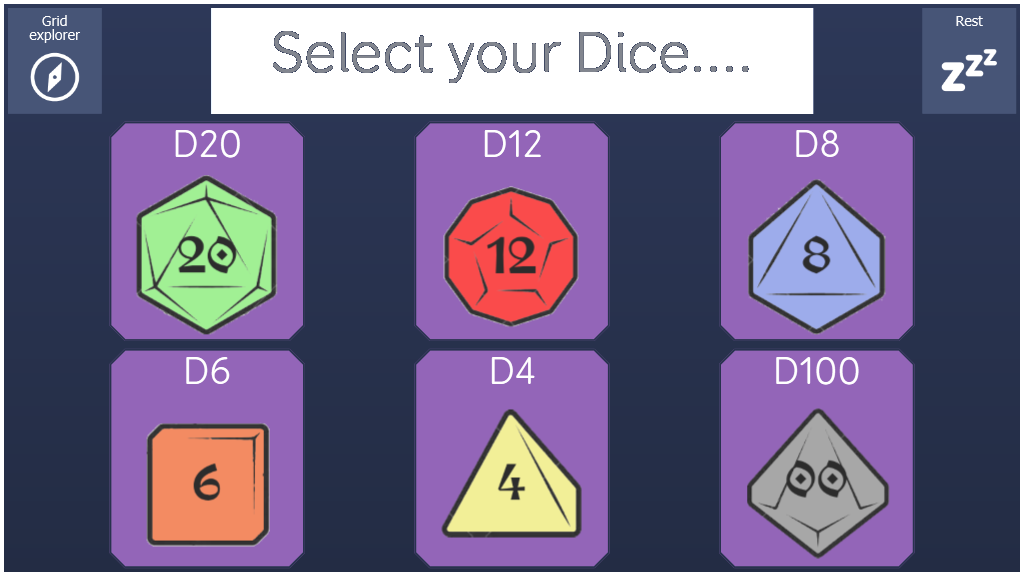 A Grid for making Dice rolls for Tabletop RPG games like 'Dungeons and Dragons'. Contains: - D20 - D12 - D8 - D6 - D4 - D100 v1.2 - Improved random number generation. Duplicate values on multiple dice throws now displaying - Added Dice roll sound effect before roll appears v1.1 - Grid Set is now 10x6 for touch + keyguard access
