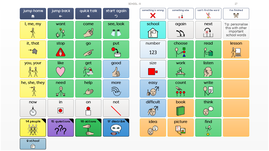 Super Core Printable Books are grid sets based on the Super Core language system, designed to be personalised within Grid software. Once printed, cut out and assembled, they form paper-based communication books which can be used anytime, anywhere. Printable books contain consistent core words, language for daily and play activities and short phrases. Find guidance on personalising and printing them on the Smartbox Hub. This grid set contains vocabulary tailored to children and forms a single sided book with 6x8 cells, that is quicker to assemble and easier to personalise. Note: Ensure you are using Grid version 93 for the latest print settings. v 1.02