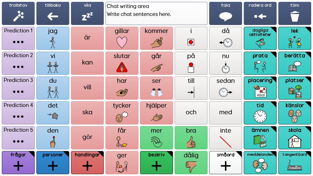 Super Core är ett lättanvänt kärnvokabulär som utformats för att hjälpa tidiga AKK-användare att lyckas med symbolkommunikation. Super Core kombinerar ett konsekvent kärninnehåll med ord som kan användas i sitt rätta sammanhang, där fokus ligger på dagliga rutiner, lek och aktiviteter. Allt för att hålla kommunikationen motiverande och meningsfull! Super Core är utformad för att ge funktionella men enkla ordförråd, som utvecklar språkinlärning och främjar utveckling av läs och skrivkunnighet. Det är förankrat i forskning, och har utvecklats av Smartbox tal-och språkterapeut Daisy Clay. v2.22