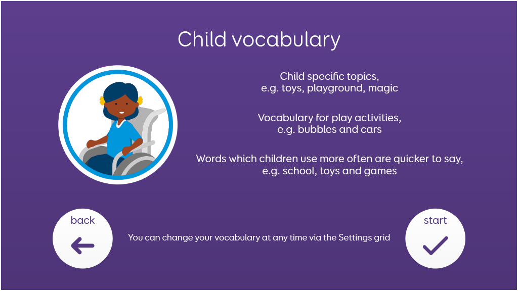 Voco Chat is a low-cell count symbol vocabulary, designed to enable users to communicate for a wide range of reasons. Message pathways, with built-in jumps and carefully selected vocabulary, provide a supported approach to language. The grid set includes resources for supporting communication and emotional wellbeing, with apps such as Symoji and Camera to support interaction and engagement. Voco Chat is suitable for anyone who needs larger cells, and can be used with touch, eye gaze, pointer and switches. Auditory prompts are included for both columns and individual cells. When you add Voco Chat for the first time, you can select either ‘Child’ or ‘Teen and Adult’ in order to choose the most appropriate vocabulary for the user. v1.06
