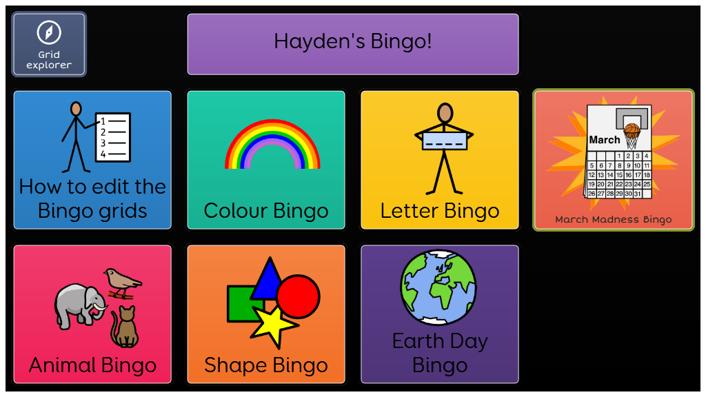 This Bingo grid set allows students to participate in Bingo for a range of topics: colours, shapes, letters, numbers and animals. Each Bingo game can be easily edited using word lists. As students select an item they have, the word is then greyed out.