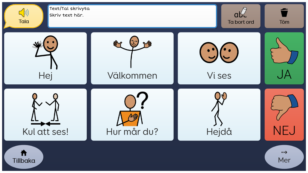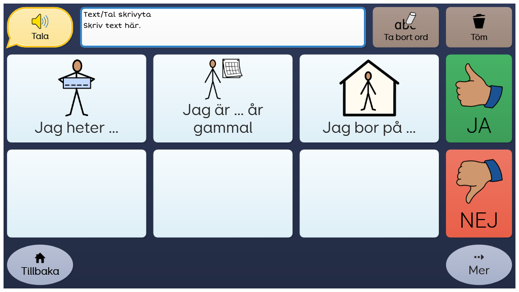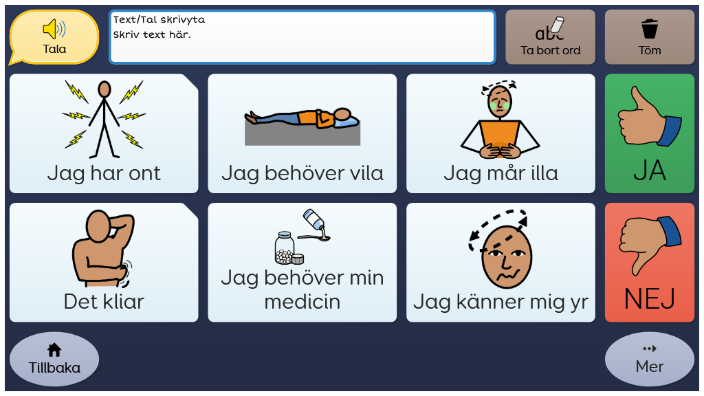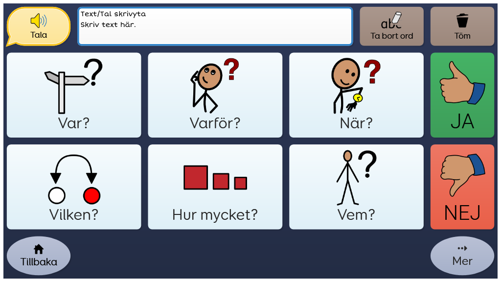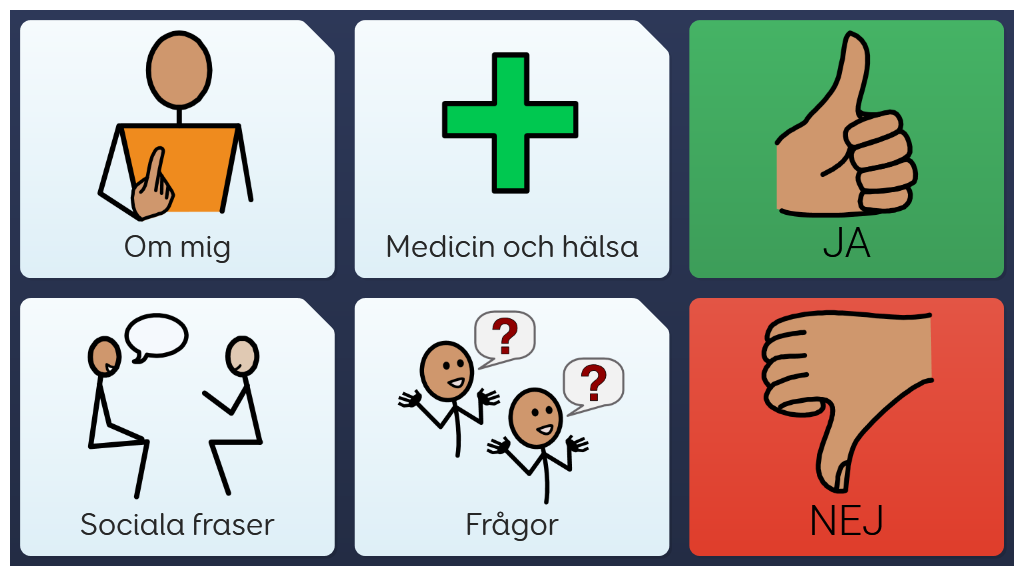 Avidentifierat exempel på enkel anpassning med 4 länkade kategorier samt genomgående ja/nej-knappar.
