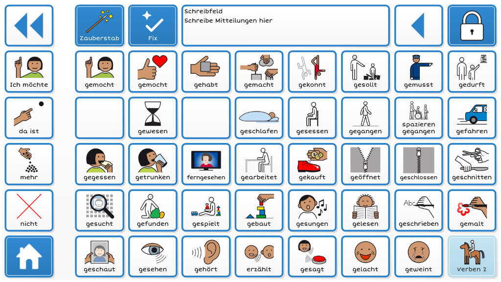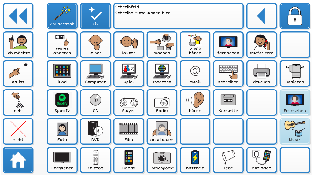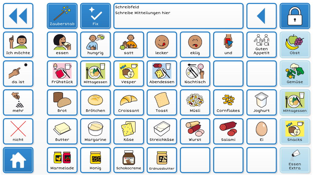 Diese Struktur bietet einen idealen Einstieg in die Unterstützte Kommunikation – und wächst flexibel mit den Bedürfnissen der Nutzer:innen. Dank der klar strukturierten, leicht verständlichen Symbole und eines vorgefertigten Wortschatzes, gelingt Kommunikation schnell, intuitiv und effektiv. Smarte Grid-Funktionen wie der Zauberstab, integrierte Online-KI-Tools und verschiedene Tastaturen sind bereits enthalten und sorgen für ein modernes, leistungsstarkes Nutzungserlebnis. Inhalte lassen sich individuell anpassen: Eigene Fotos können direkt über die integrierte Kamera eingebunden werden, neue Seiten und Symbole stehen aus der umfangreichen METACOM-Bibliothek jederzeit zur Verfügung. Vorgefertigte Phrasen beschleunigen zusätzlich die Kommunikation und unterstützen den Alltag spürbar.