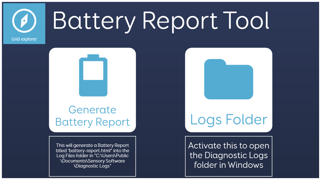 A utility that uses Program commands to generate a 14 day battery report in the Public Log Files folder for Grid 3.
