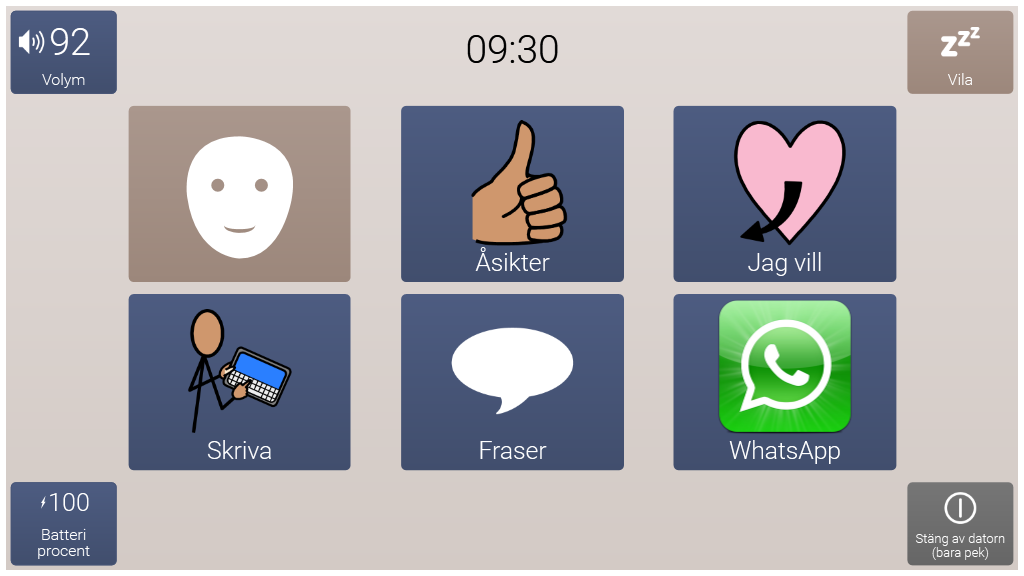 Enkel kommunikation - gjort i Fast Talker. Fraser redigeras med knapparna på respektive sida, inte i Redigera ordlista.