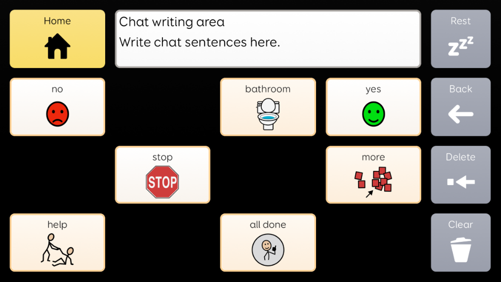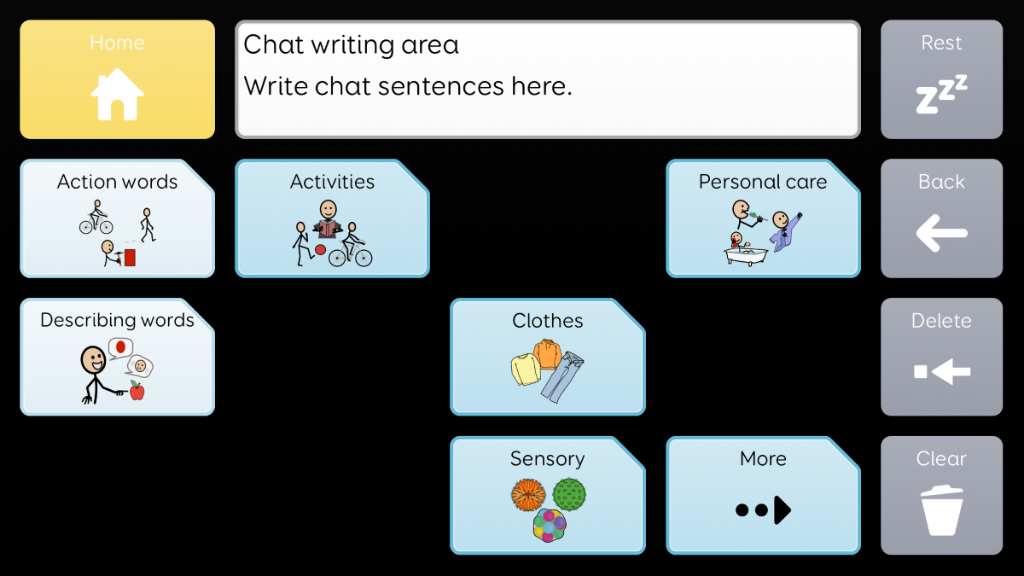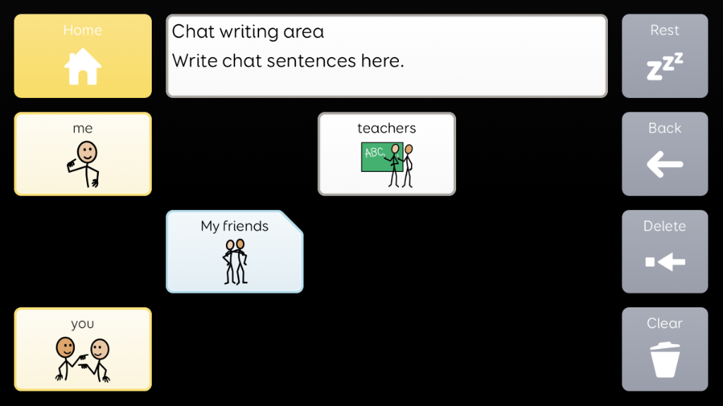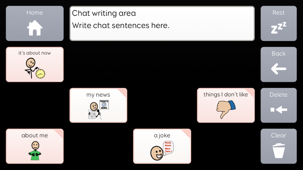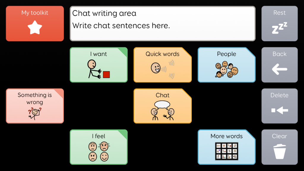 Voco Chat is a low-cell count symbol vocabulary, designed to enable users to communicate for a wide range of reasons. Message pathways, with built-in jumps and carefully selected vocabulary, provide a supported approach to language. The grid set includes resources for supporting communication and emotional wellbeing, with apps such as Symoji and Camera to support interaction and engagement. Voco Chat is suitable for anyone who needs larger cells, and can be used with touch, eye gaze, pointer and switches. Auditory prompts are included for both columns and individual cells. When you add Voco Chat for the first time, you can select either ‘Child’ or ‘Teen and Adult’ in order to choose the most appropriate vocabulary for the user. v1.05