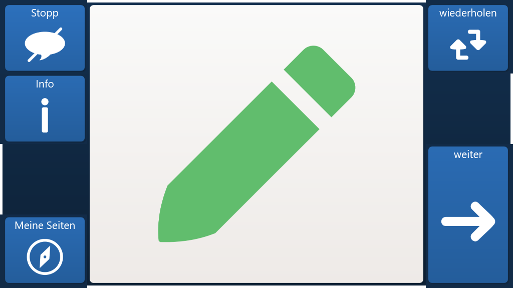Eine Vorlage für ein einfaches Bilderbuch. Der Text wird beim Öffnen einer Seite automatisch vorgelesen. Das aktuell vorgelesene Wort wird hervorgehoben. Die Vorlage ist für 30 Seiten vorbereitet.