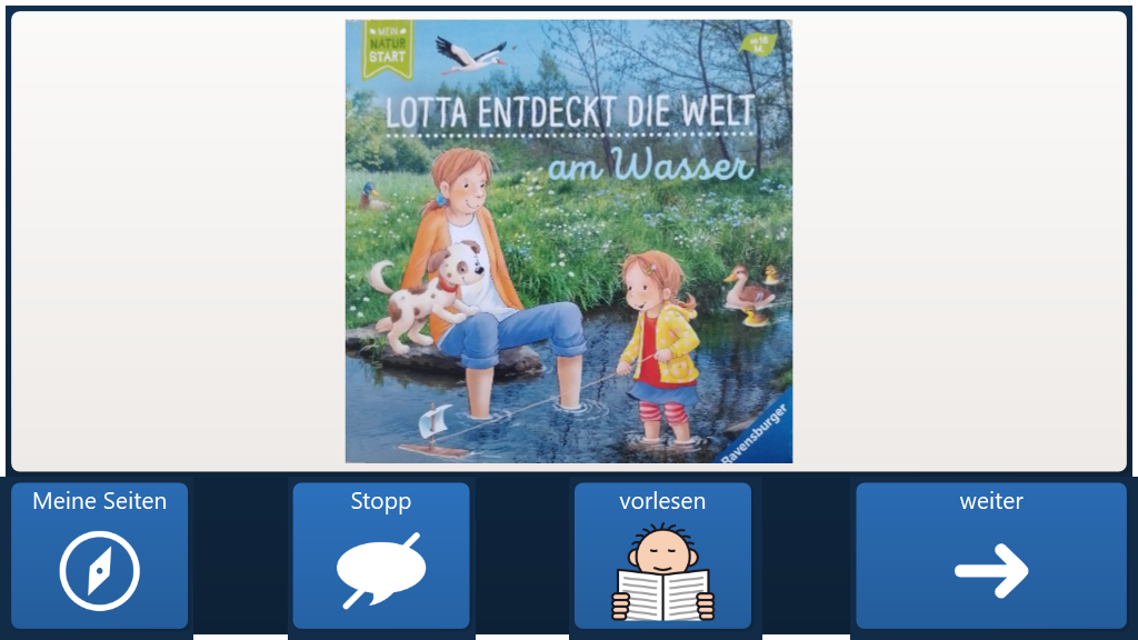 Eine Vorlage für ein einfaches Bilderbuch. Der Text wird beim Öffnen einer Seite automatisch vorgelesen. Das aktuell vorgelesene Wort wird hervorgehoben. Die Vorlage ist für 30 Seiten vorbereitet.