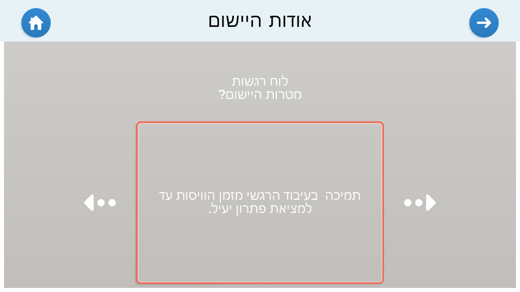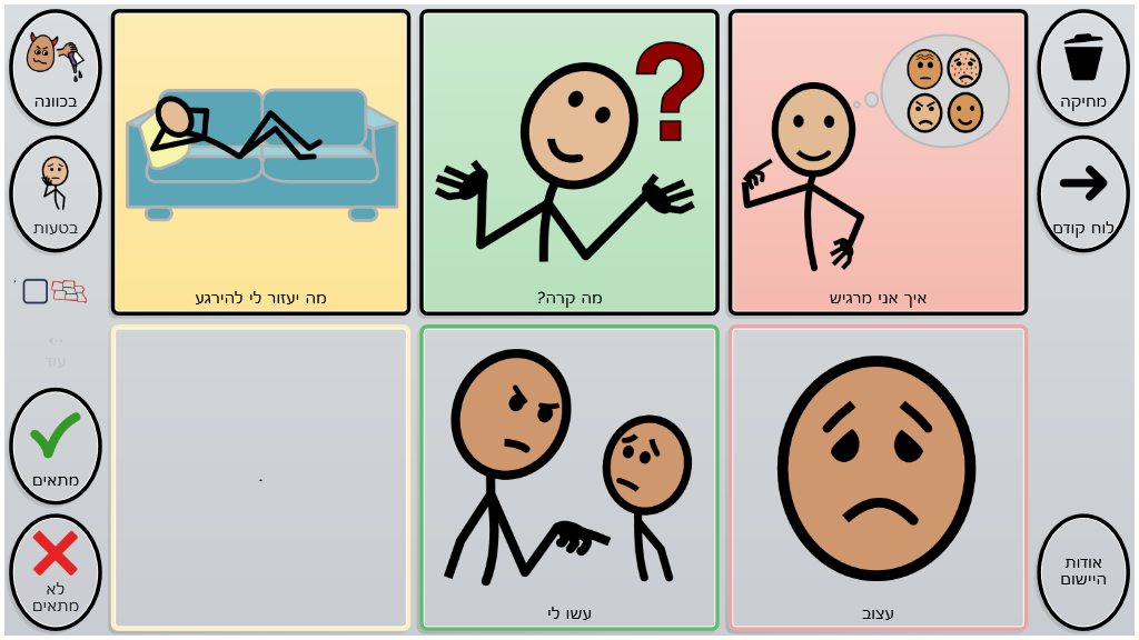 לוח לעיבוד רגשית בצורה הדרגתית . היישום נבנה ע"י מלכה טאצ'ר ושבי צייגר בעמותת סולם