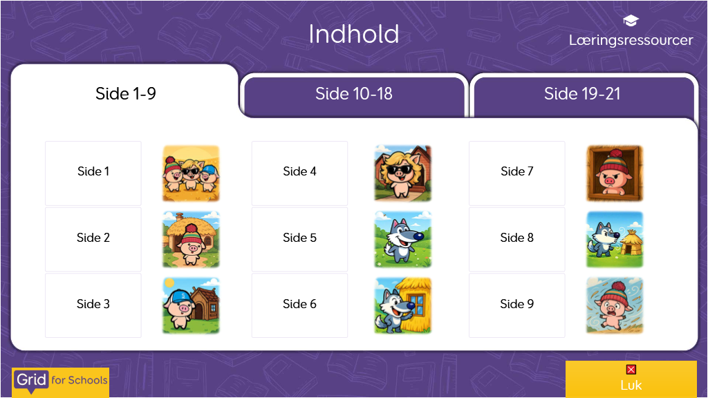 Følg Ib, Bo og So når de bygger deres huse af strå, træ og mursten, og hvad mon der sker når ulven kommer på besøg? til historien hører masser af opgaver, som man i fællesskab kan løse. samtidig med, at man øver sig på rækkefølge, symboler og bogstavlyde og meget mere. Det er muligt at anvende forskellige betjeningsformer.